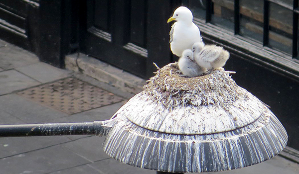 Kittiwakes nesting on some street lighting On Newcastle Quayside by Lophophanes